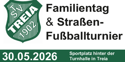 Am 30. Mai 2026 um 13:00 Uhr (Anmeldung ab 12:30 Uhr) findet auf dem Sportplatz in Treia auch in 2026 wieder der jährliche Familientag mit anschließendem Straßenfußballturnier statt.